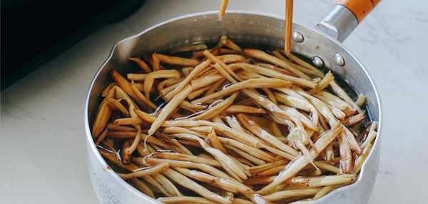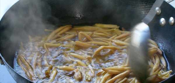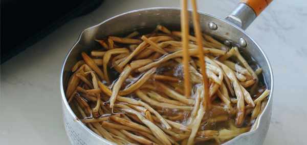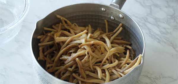 然後我們鍋中燒開熱水,把我們泡制好或者新鮮的黃花菜下去鍋中煮3分鐘左右,這個步驟也很重要我們的黃花菜一定要煮透煮熟,不然還是有點輕毒起來對身體不好。