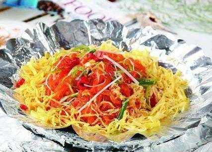 1.包菜、胡蘿卜去皮洗凈、分別切成絲。
