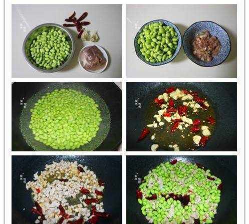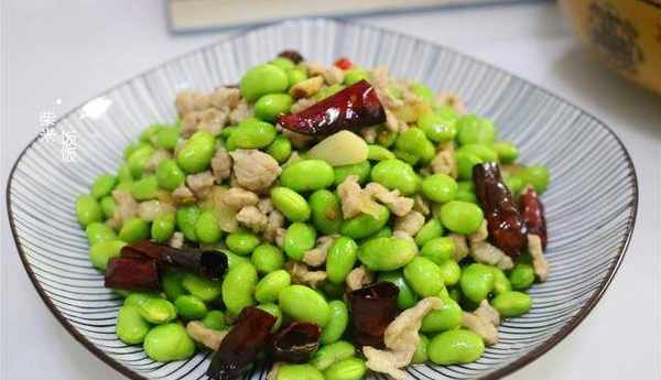 1,豬肉切成肉末。毛豆搓洗幾遍,把表皮去掉。
