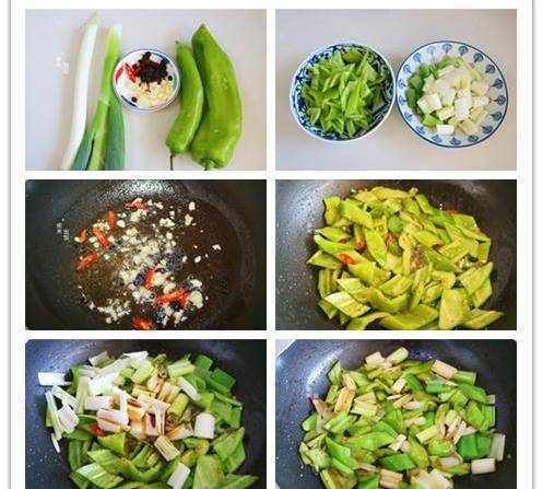 5,大火快速炒勻就可以出鍋瞭。為瞭保持食材的鮮味,青椒和大蔥炒到8分熟就好。