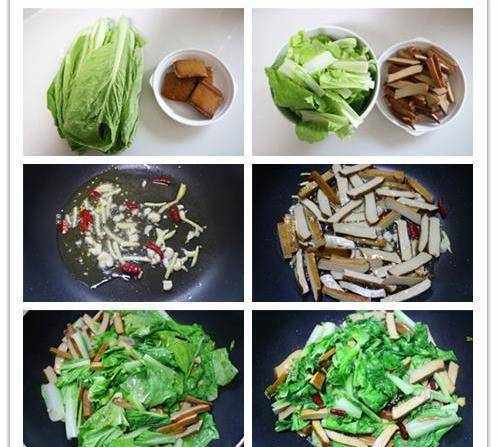 1,白菜洗凈,切段。香幹清水沖一遍,切條。