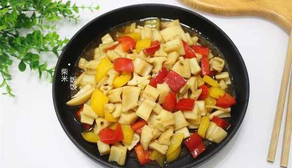 1,蓮藕去皮,切成小丁,用清水淘洗幹凈。彩椒去籽去蒂,洗凈後切成小塊。