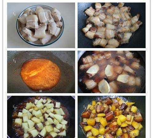 5,40分鐘後倒入土豆塊,加入鹽調味,燉熟就可以瞭。