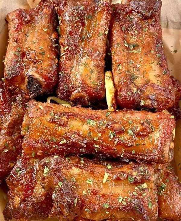 步驟一:排骨洗凈加入一勺料酒+一勺老抽+一勺生抽+一勺蠔油+一勺蒜末+一勺薑末+一勺鹽+一勺辣椒粉+一勺黑胡椒粉+一勺十三香,打入一個雞蛋,兩勺淀粉抓勻醃制60分鐘以上