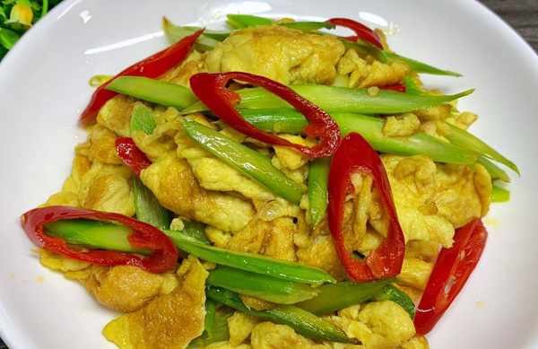 2、蘆筍炒蛋:將蘆筍和蛋打散,然後一起炒制。您還可以添加蒜和其他蔬菜來增加口感和味道。