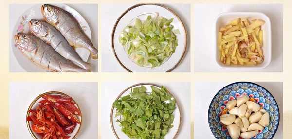 做“清蒸黃花魚”食材很簡單,黃花魚,以及蔥薑蒜辣椒等輔料。