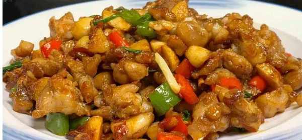 3、再把剩下的薑蒜粒炒香,再加入一勺豆瓣醬炒出紅油。再把炸好的牛蛙給倒進來,炒至30秒左右炒出香味,加入適量的食鹽,雞精,生抽,蠔油,胡椒粉,然後快速的給它翻炒均勻,再把青紅辣椒也加進來,炒至斷生以後,再加入小蔥段,繼續翻炒即可出鍋瞭。
