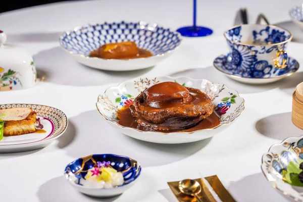 廣舟餐廳的招牌菜式「十年兩頭吉品溏心鮑」,被主廚選擇與俄皇草之祝願系列融合。手繪的花草紋路栩栩如生,餐盤的樹葉部分采用24k金手工勾勒,在曼妙樹枝中,感受餐品與藝術相遇的悸動。