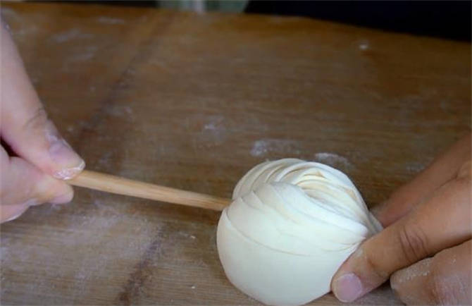 9.咱們這個花卷雖然隻餳發瞭一次面,但是蒸出來也是特別松軟的,而且這個花卷的造型也很簡單,筷子夾一夾就能成功瞭,喜歡的朋友可以在傢試一試。