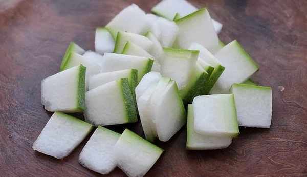 1.首先準備冬瓜一塊給它去掉外皮,然後給它切成薄薄的厚片放入碗中備用。排骨500克給他剁成三厘米左右的小塊,然後放在面粉水中給他沖洗幹凈。
