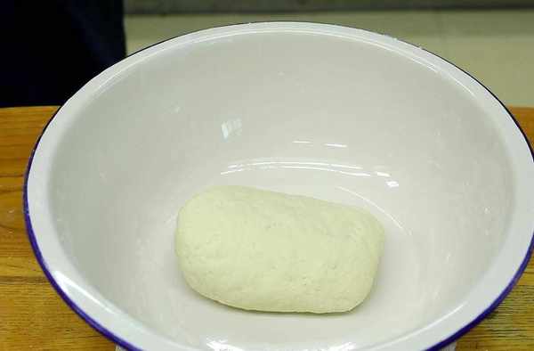 1.盆中放入適量的小麥面粉,從中間一分兩半,撒上適量的食鹽增加筋性,一半用開水燙,一半用清水和,先攪拌成絮狀再揉成面團,面團揉光滑以後蓋上棉佈,放在一邊餳上十來分鐘。