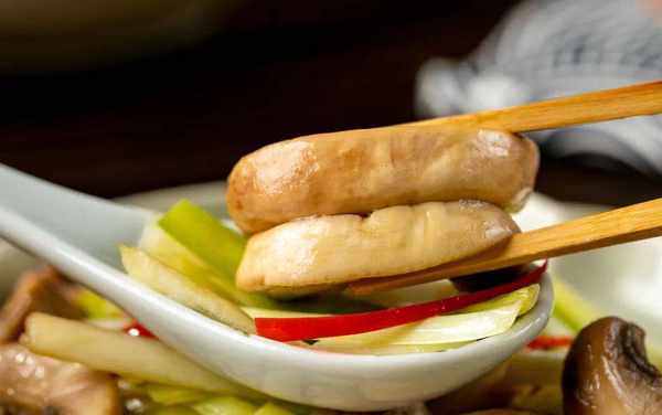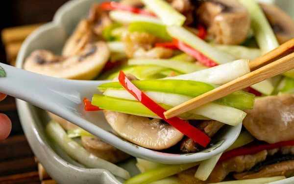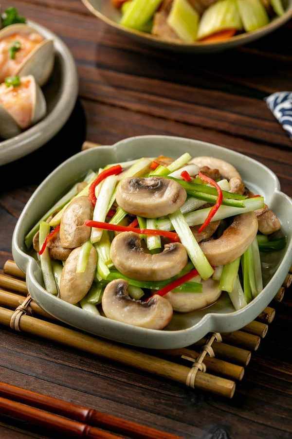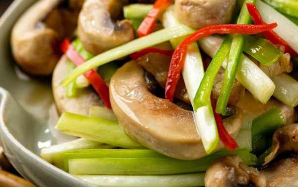 口蘑本身鮮甜多汁,翻炒後多瞭一絲油潤。