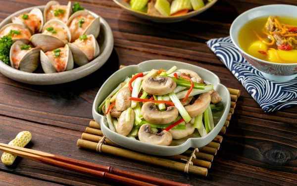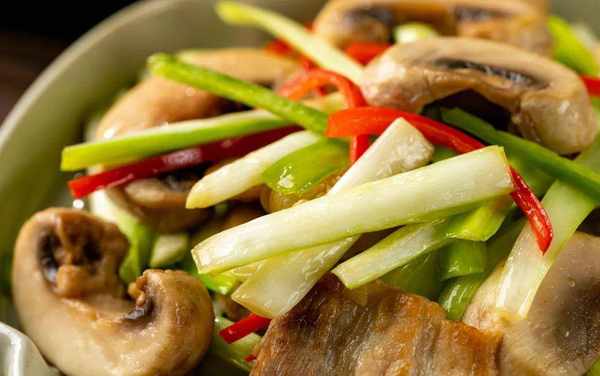 素菜炒素菜,極考驗食材,幸好口蘑跟韭黃,都是素中鮮。