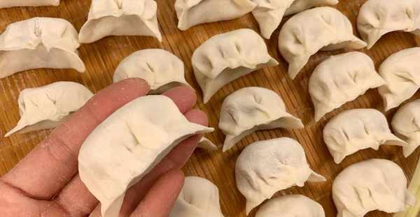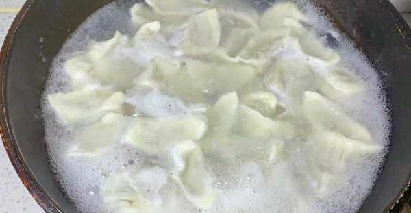 5、鍋中放入適量的冷水,大火燒開後,倒入餃子,現包的餃子表皮比較軟,不要著急用鏟子滑動,大概煮20秒再用鏟子朝一個方向滑動,再次煮開後沿鍋邊淋入少許的冷水,反復兩次煮開,餃子會完全煮熟漂浮,即可關火盛出。