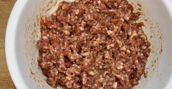 3、萵筍葉和豬肉餡最搭配,買一塊新鮮的豬肉,春天要少吃一些肥肉,選一塊瘦肉多一些的,用絞肉機攪成肉泥。肉餡提前醃一會吃起來更香,放料酒去腥、醬油上色、2勺蠔油、少許鹽,用筷子翻拌均勻,醃上10分鐘就可以。