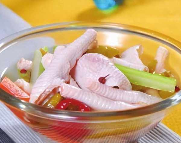 做法:1.雞爪洗凈、去掉爪尖,切成小塊;鍋中加水,放入切好的薑片以及雞爪,加鹽,大火煮 10 分鐘。