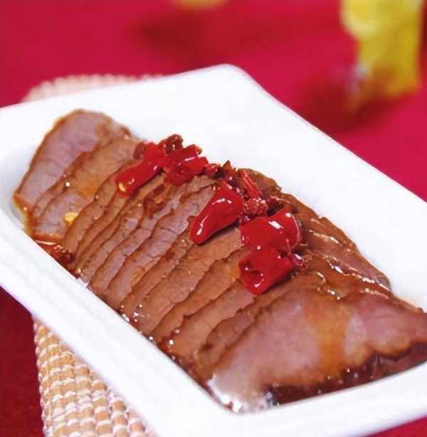 調料:辣椒油 3 大匙,芝麻面 20 克,花生末 30 克,醬油 30 毫升,鹽、花椒面各 5 克,八角 4 克,味精、花椒、肉桂各 2 克,白酒 10 毫升,老鹵水 500 毫升。