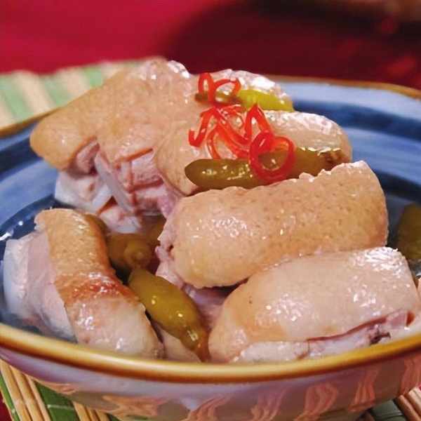 4.將鴨子斬成條狀裝盤,淋上泡椒汁即可。