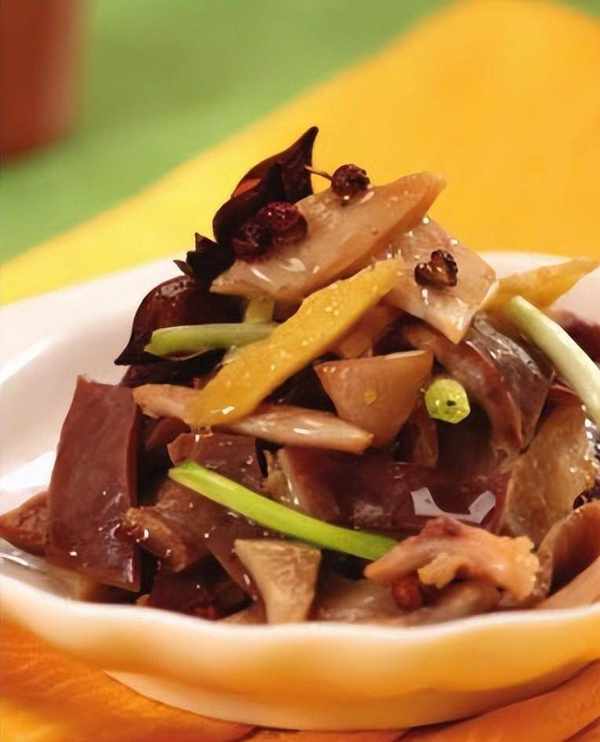 做法:1.將豬心剖開,洗凈血水,與薑、蔥、花椒同置鍋內用中火煮到豬心六成熟時,將它撈出放涼。