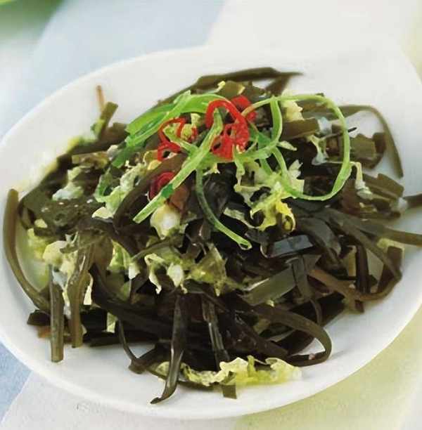 做法:1.海帶洗凈,放在清水裡泡開,切成絲;白菜擇洗幹凈,去幫,切成絲;蒜去皮,洗凈,切成末。