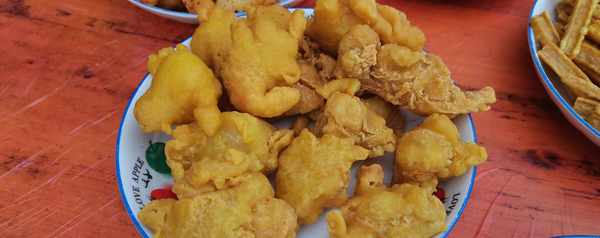 以前農村宴席的酥肉是沒有肉的,就是面粉炸出來一坨一坨的,舍得一點的主人會把做膀的邊角料放進去,但全是肥的。油炸好之後再蒸,吃起來軟和但很香。很多時候油炸的時候就會拿來吃。