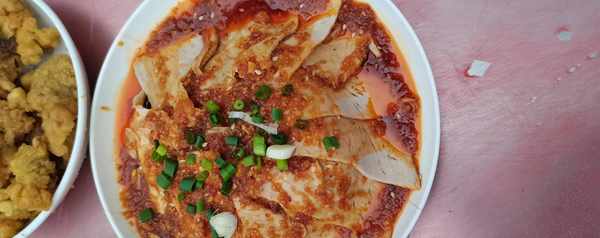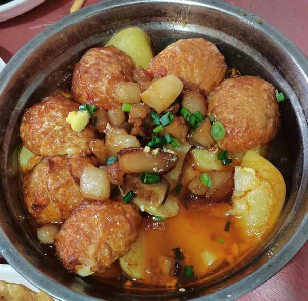 這道菜是先把雞蛋煮熟,剝殼以後再用油炸,然後再蒸制而成,在經濟困乏的年代,這道菜是非常受寵的一道菜。