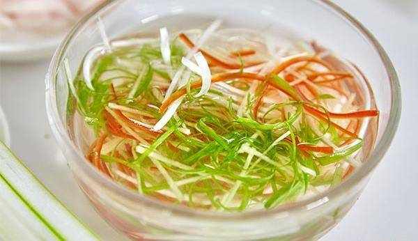 1.原料準備,切蔥絲,紅椒絲放入清水中浸泡,準備薑絲。