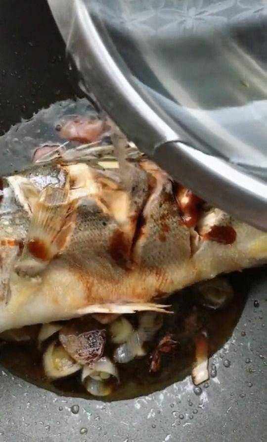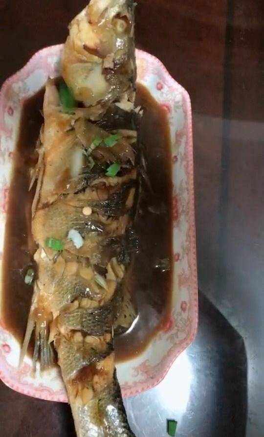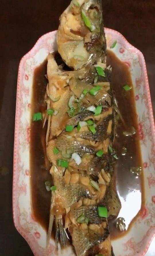 經過半個小時的努力,一道美味的紅燒海鱸魚終於做好瞭。特別適合孕婦和剛生產的婦女吃哦,怎麼吃都不胖。還能安胎催乳