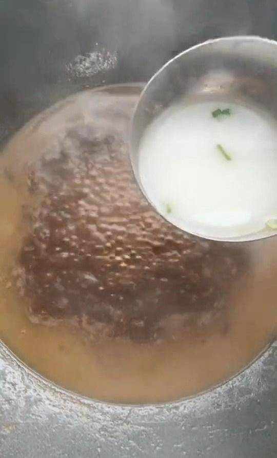 將事先準備好的蔥薑蒜、大料、料酒、生抽、蠔油、紅燒醬油、水、鹽放入鍋中