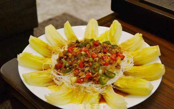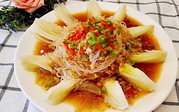 把它澆在粉絲和娃娃菜上,水開上鍋蒸上五分鐘,五分鐘後將其取出來,撒上剩餘的蒜末,撒點小蔥花,青紅辣椒,燒點熱油炸香後,就可以吃瞭,口感清香,非常的美味,快點做起來吧。