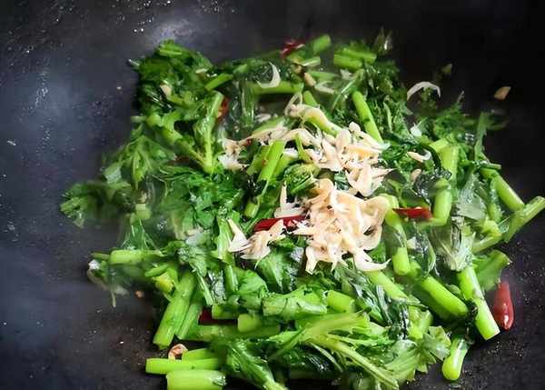 不要翻炒,蓋蓋燜上二分鐘,燜好之後,大火翻炒均勻,就可以出鍋裝盤吃瞭,這樣做出的茼蒿格外的鮮美營養,刮油油解膩,快點做起來吧。