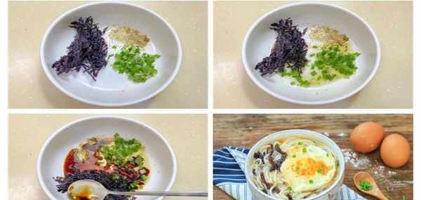 所需食材:適量紫菜,少許蔥花,少許面條。