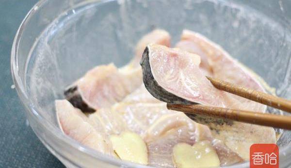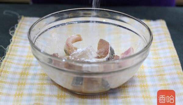 3.攪拌均勻,讓每塊魚都沾上薄薄的淀粉,醃制10分鐘以上