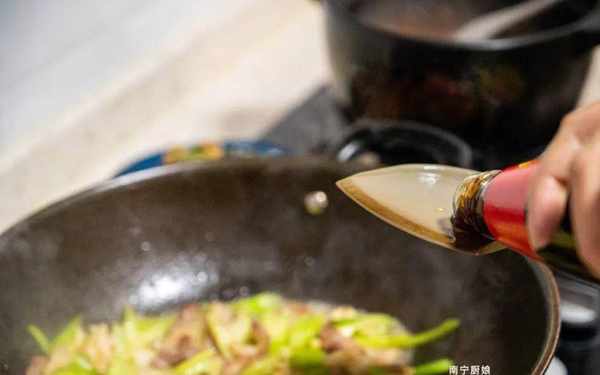 7、將芹菜炒軟後,再添加少量的蠔油提鮮,翻拌入味便能關火出鍋瞭。