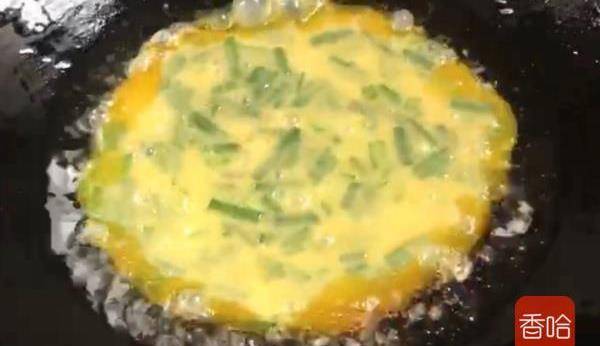 4.起鍋熱油,油溫6成熱時,倒入雞蛋液
