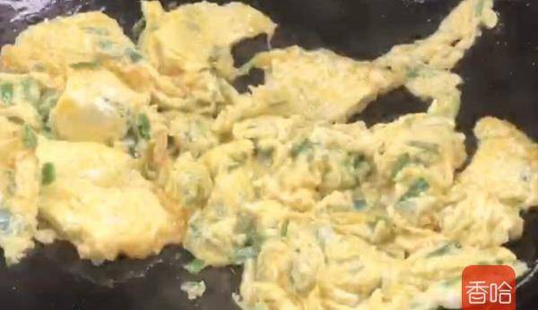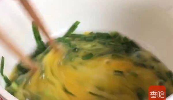 3.雞蛋打入碗中,加入韭菜段,劃散成蛋液