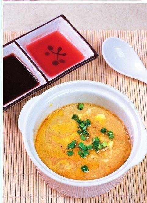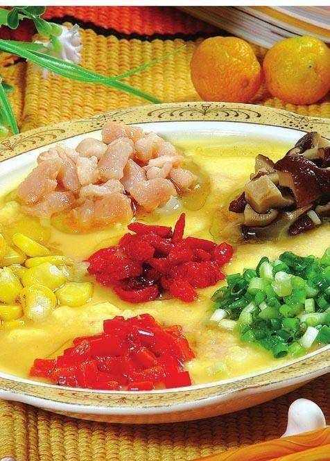調料:豬油、精鹽、味精、蔥花、水淀粉、鮮湯、蒸蛋石灰粉。