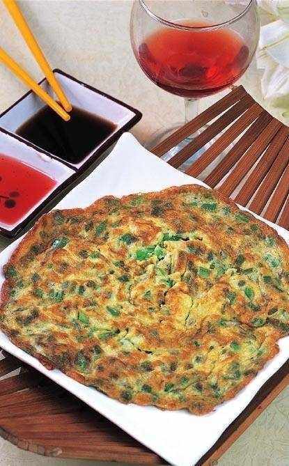 3 凈鍋置旺火上,放植物油,燒熱後倒入蛋液,煎至兩面呈金黃色,熟後出鍋裝入盤中。