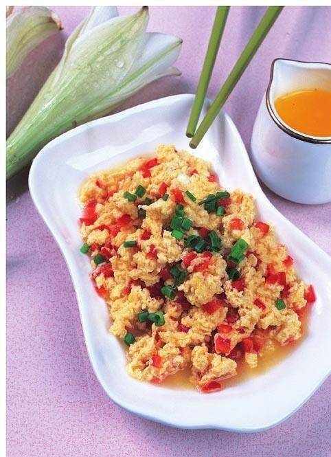 原料:雞蛋 4 個,鮮紅泡椒 5 克。