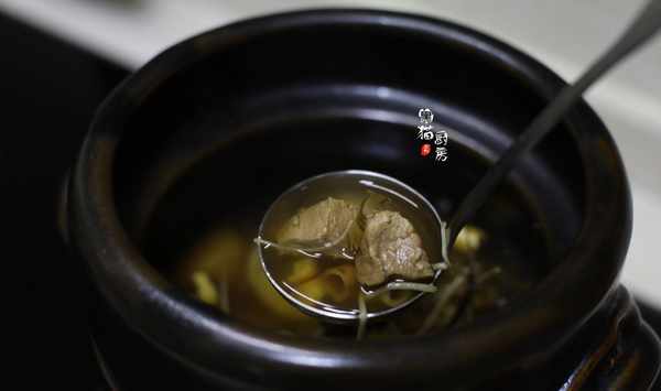 湯煲好後,有淡淡的蘆根和麥冬的清新味道,加少許鹽調味即可。