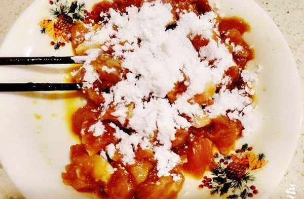 調醬汁:1勺番茄醬,6勺白糖,1勺醬油,1勺白醋,半碗水。