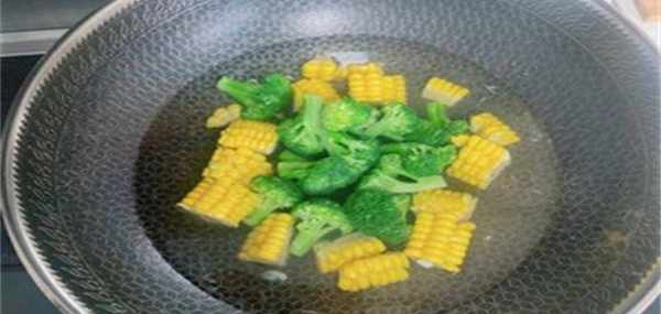 3、接著西蘭花煮得差不多瞭,就撈出來,然後把玉米放進去,煮個十幾分鐘,再撈出來備用。