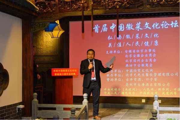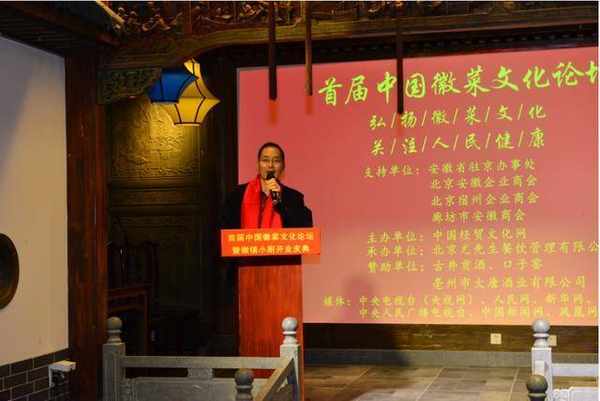 上午10:00,《英華大辭典》第四版修訂編委會主編及終審、中國經貿文化網學術專傢委員會主任張科教授宣佈首屆中國徽菜文化論壇正式開幕,並發表徽菜文化主題演講。他首先為大傢朗誦瞭即興而作的《首屆中國徽菜文化論壇偶感》小詩:陸居羽飛水中遊,莖葉根果化珍饈。煎炒烹炸煲燉煮,蒸拌釀生熬焗溜。徽鎮小廚賓朋聚,徽菜文化寫春秋。張教授說,現在一提到安徽,大傢立刻會想到黃山這個聞名遐邇的國際旅遊城市,但安徽是一個歷史悠久擁有深厚文化底蘊的大省,黃山隻是安徽文化的很小一部分。以文化論壇的形式來傳承並弘揚徽菜的發展歷史和光榮傳統,在中國徽菜史上尚數首創,是徽菜文化事業的一大盛事,更是泱泱千年徽菜發展的一個裡程碑,今天,必將載入徽菜文化發展光榮史冊!