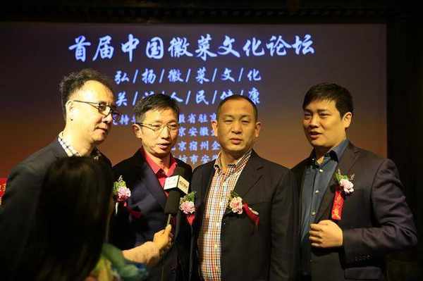 廊坊市安徽商會秘書長褚金永(左二)和徽鎮小廚名廚高建飛(左三)等人紛紛發表瞭各自的看法