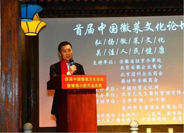 隨著改革開放的進一步推進,人們的流動性越來越大,到處呈現出“人不分省別,地不分南北”的局面,生活富裕起來的中國人追求舌尖上的美味是一大趨勢。人們越來越追求飲食健康,即康養飲食,這恰好為徽菜新品研發提供瞭天賜良機。來到人稱”京城徽菜第一傢“的徽鎮小廚,品可口的徽菜美味,賞悠揚黃梅戲曲,觀古樸典雅建築,呷安徽名酒,享健康人生。希望在首屆中國徽菜文化論壇上能夠多挖掘安徽地方文化元素,給首都各界人民和海內外各界人士展現徽菜背後的文化底蘊,讓大傢通過徽菜的點滴去更多的瞭解和認識、熟悉並愛上安徽。