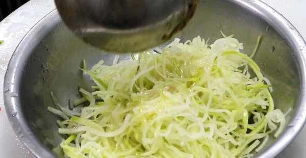 接著加入少許植物油,防止茼蒿粘連,也能更好的鎖住水分,拌勻備用。