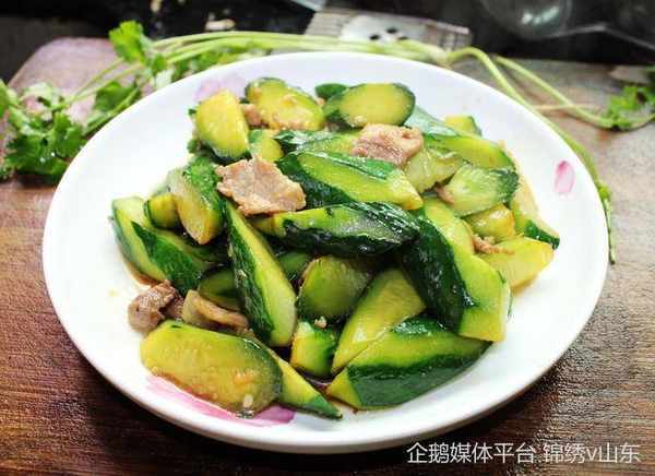 7、倒入黃瓜錢,加適量鹽煸炒幾分鐘即可。