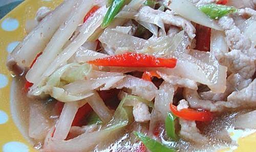 1.瘦肉50克剁碎,加入少許淀粉、水和香油醃15分鐘。醃肉的時候就要切白蘿卜瞭。應將一小半帶皮的白蘿卜切成薄片,然後磨碎。2瓣壓碎的大蒜。1個辣小米。