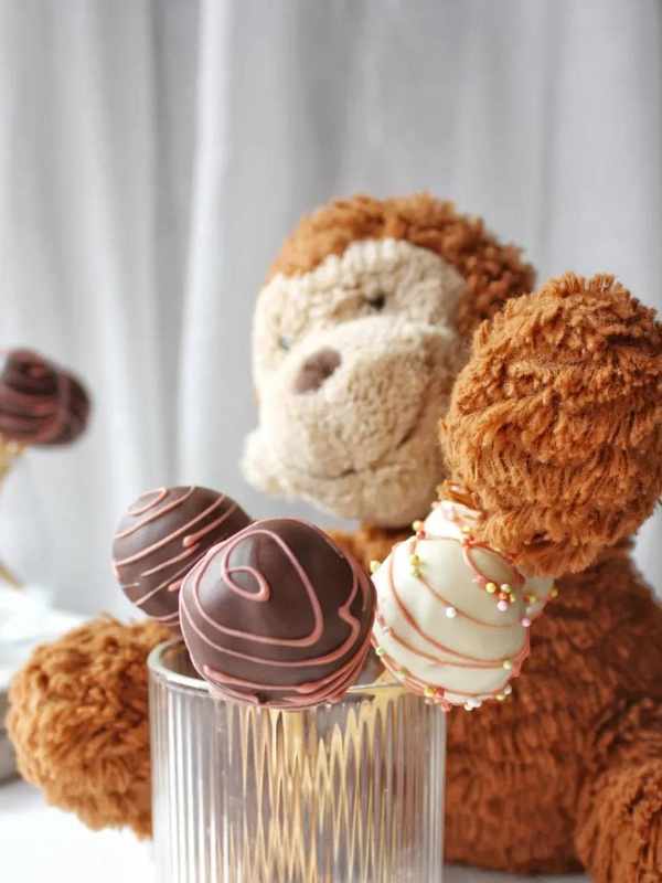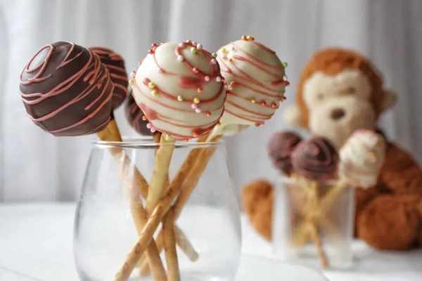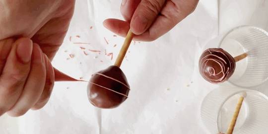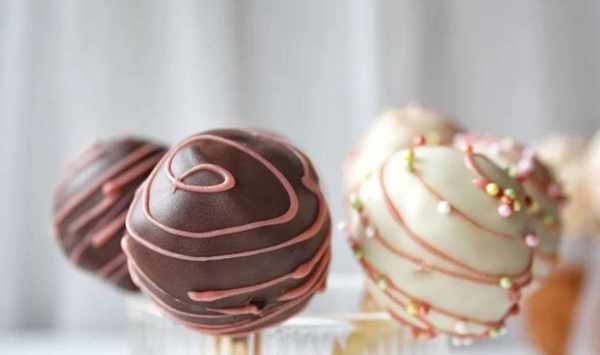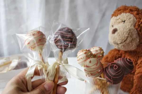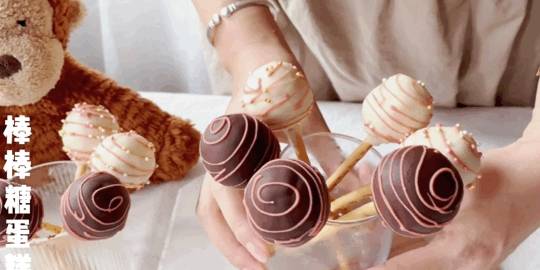 把邊角料的蛋糕用料理機打碎,加入巧克力淡奶油液或奶油奶酪,搓成小圓球,裹滿巧克力,插上一根棒棒餅幹,最後用小糖珠或者彩色巧克力裝飾就完成瞭,別說小朋友看到喜歡瞭,大人看著也心動,太可愛瞭。
