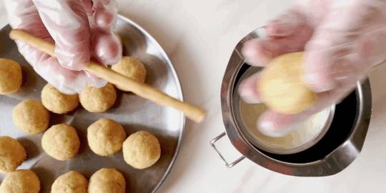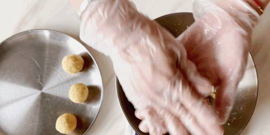 11、平均分成20-22克左右的小圓球,搓圓後,放入冰箱冷藏20分鐘